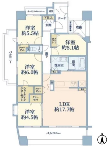 | 間取り | 4LDK | 間取り向き | (角部屋) |