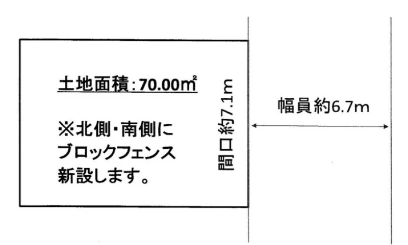 一方 東 間口7.1m 公道 幅6.7m 位置指定無 |