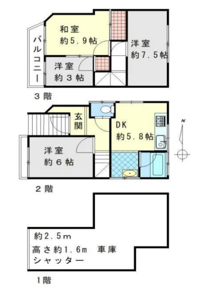 | 設備 | 都市ガス、電気、上水道、下水道、駐車場有(車庫:高さ制限有) | ||
