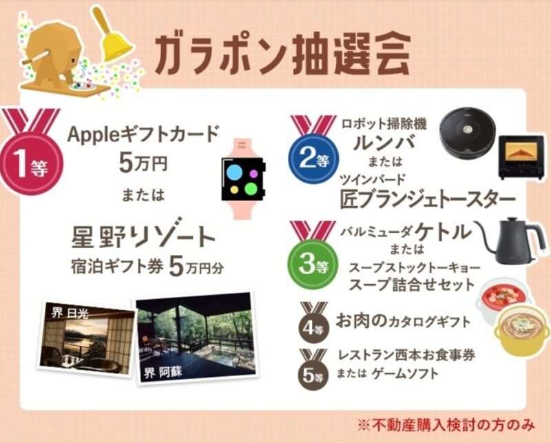 ご成約いただくと下記の成約特典をプレゼントいたします。